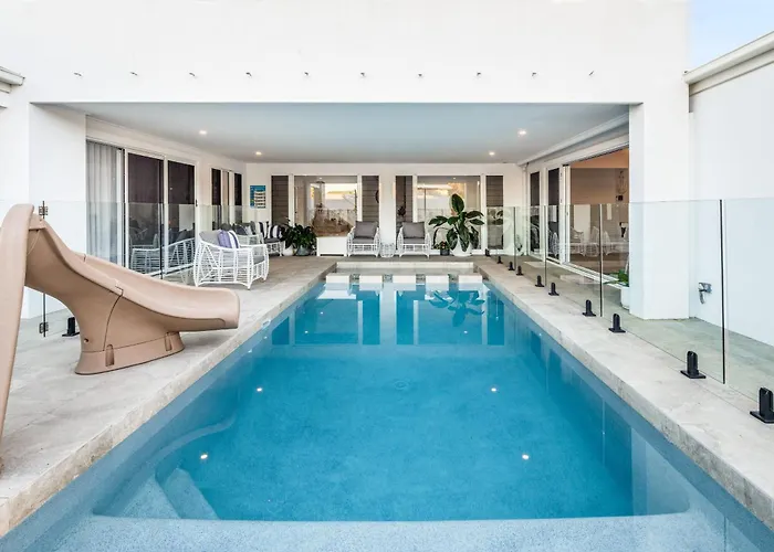 Situada a unos 300 metros del Parque Woorim, la villa Golden Beach Ultimate Family Getaway - Pool & Spa ofrece una piscina privada, además de la posibilidad de practicar equitación, ciclismo y pesca para diversificar el ocio de los huéspedes. Con un aparcamiento, la casa de vacaciones se encuentra a 3 km de los Faros de Caloundra.
